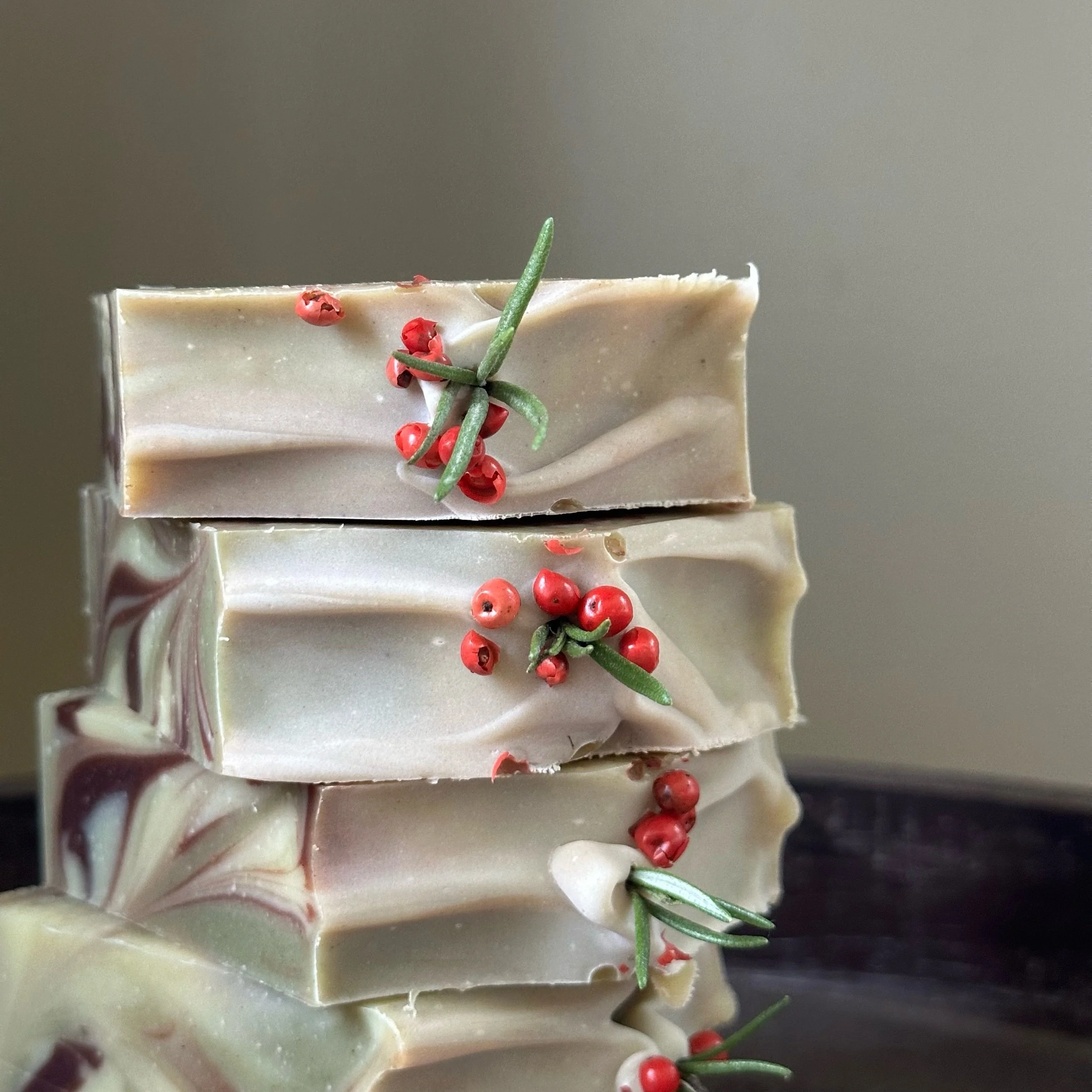 A blend of holiday favorites, New Hampshire and Citrus Spice, Winterberry Bar Soap is sure to get you into the spirit of the season! Keep your skin feeling soft and smooth during those dry months with this creamy, clay packed bar, and bask in the smell of the holidays.
